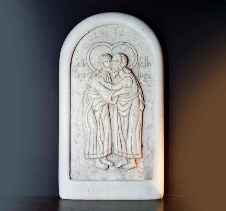 Christian icons were Mateja’s first inspiration. In Christian world an icon represents a tremendously important element in a relationship between a person, their family and the force majeure. Icon gathers and guards the family. It is a unique physical medium which enables direct relationship between a human and a saint impictured. This magnificent energy and the way it influences the family have inspired the artist to start exploring Byzantine iconography. Mateja has created his first Byzantine icon in ba-relief, the icon of Jesus Christ. In the following years Mateja continued crafting icons in different kinds of marble and inbreathing a subtle artistic note to each, while perfecting his craftsmanship at the same time. This is when many of his marble icons were created: Jesus Christ, St. Nicholas, St. Peter and Paul, St. Michael, St. Gabriel, St. George, The Virgin Mary, etc. Today Mateja Mijatovic’s icons adorn churches and homes across the world bringing peace and harmony to people around.